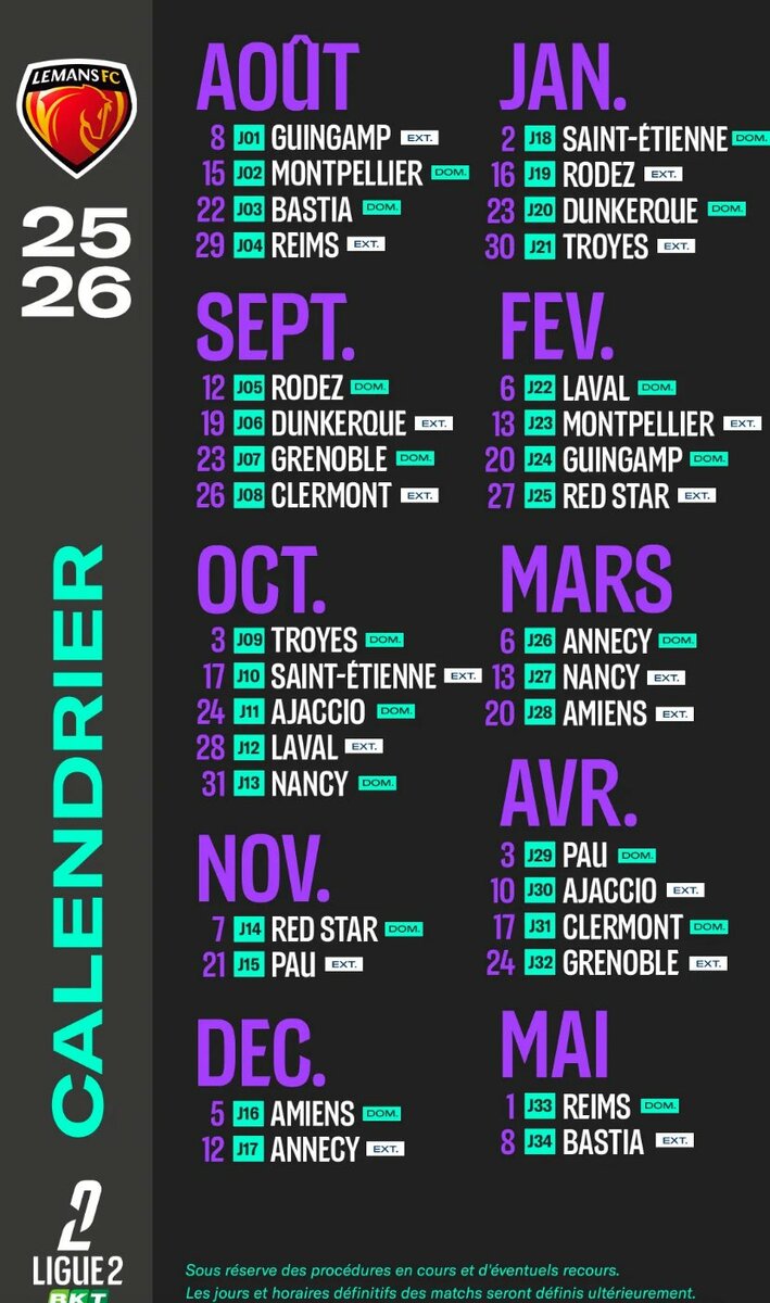 Le Calendrier 2025-2026 de Le Mans FC en Ligue 2 BKT est Sorti !